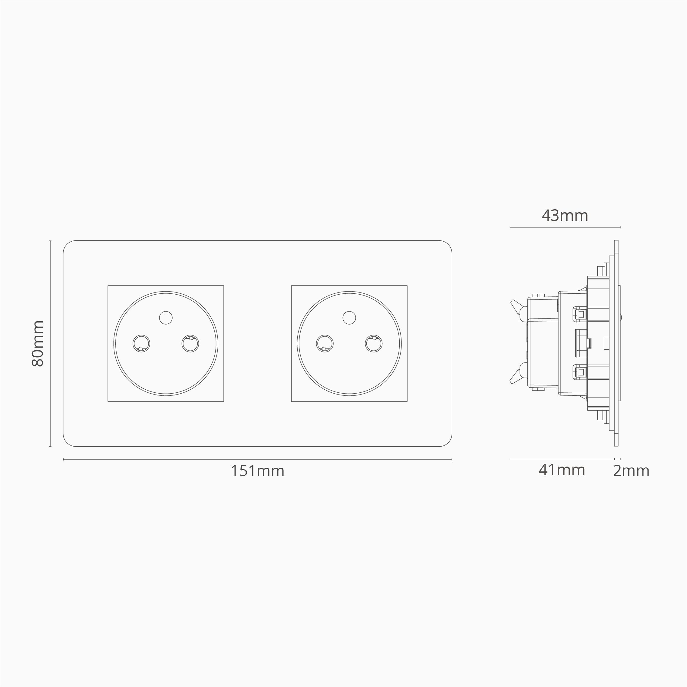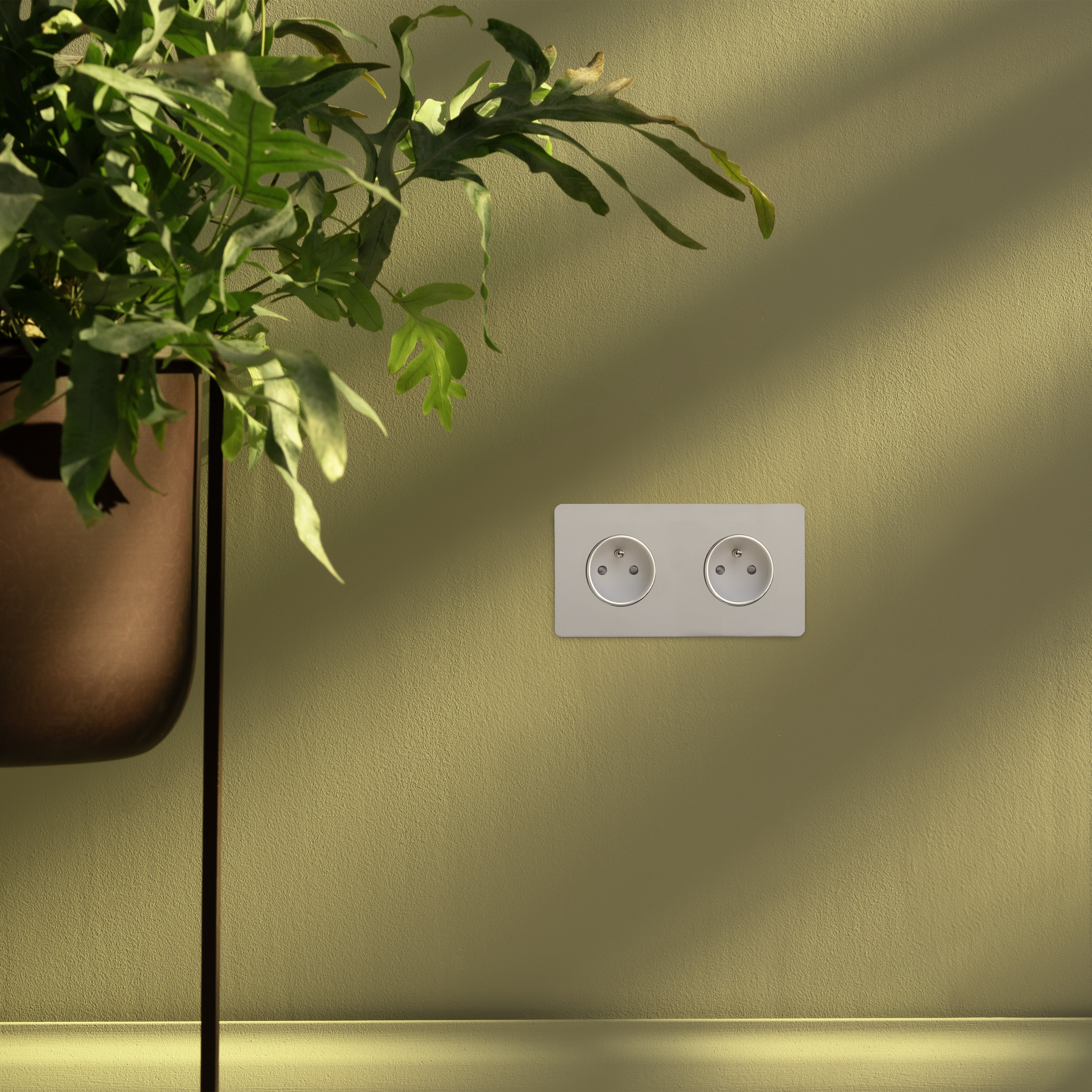 Onze dubbele 2x Frans/Belgische stopcontact is zo strak en tijdloos mogelijk ontworpen, zodat hij in elk interieur past.
