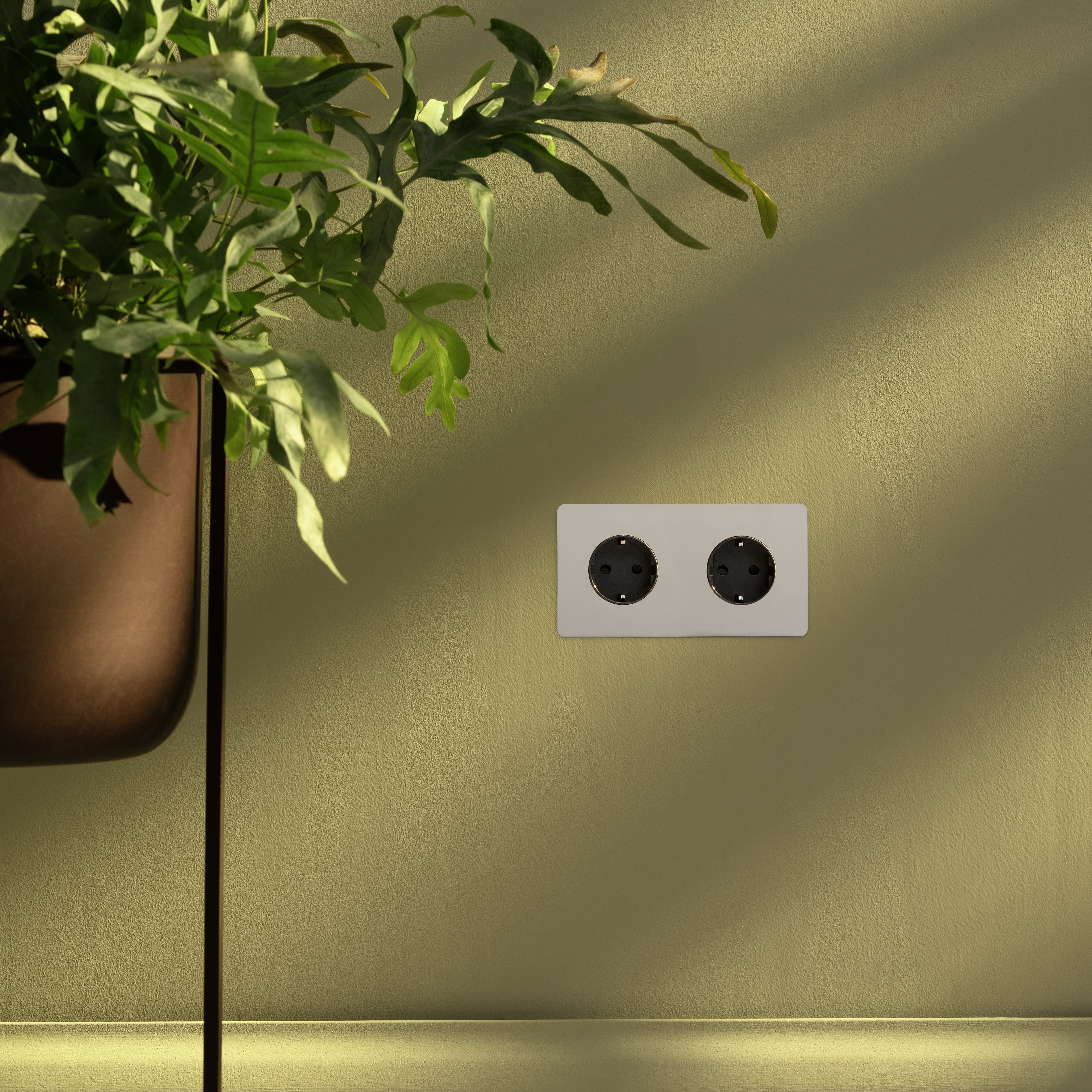 Onze dubbele 2x Schuko-stopcontact is zo strak en tijdloos mogelijk ontworpen, zodat hij in elk interieur past.