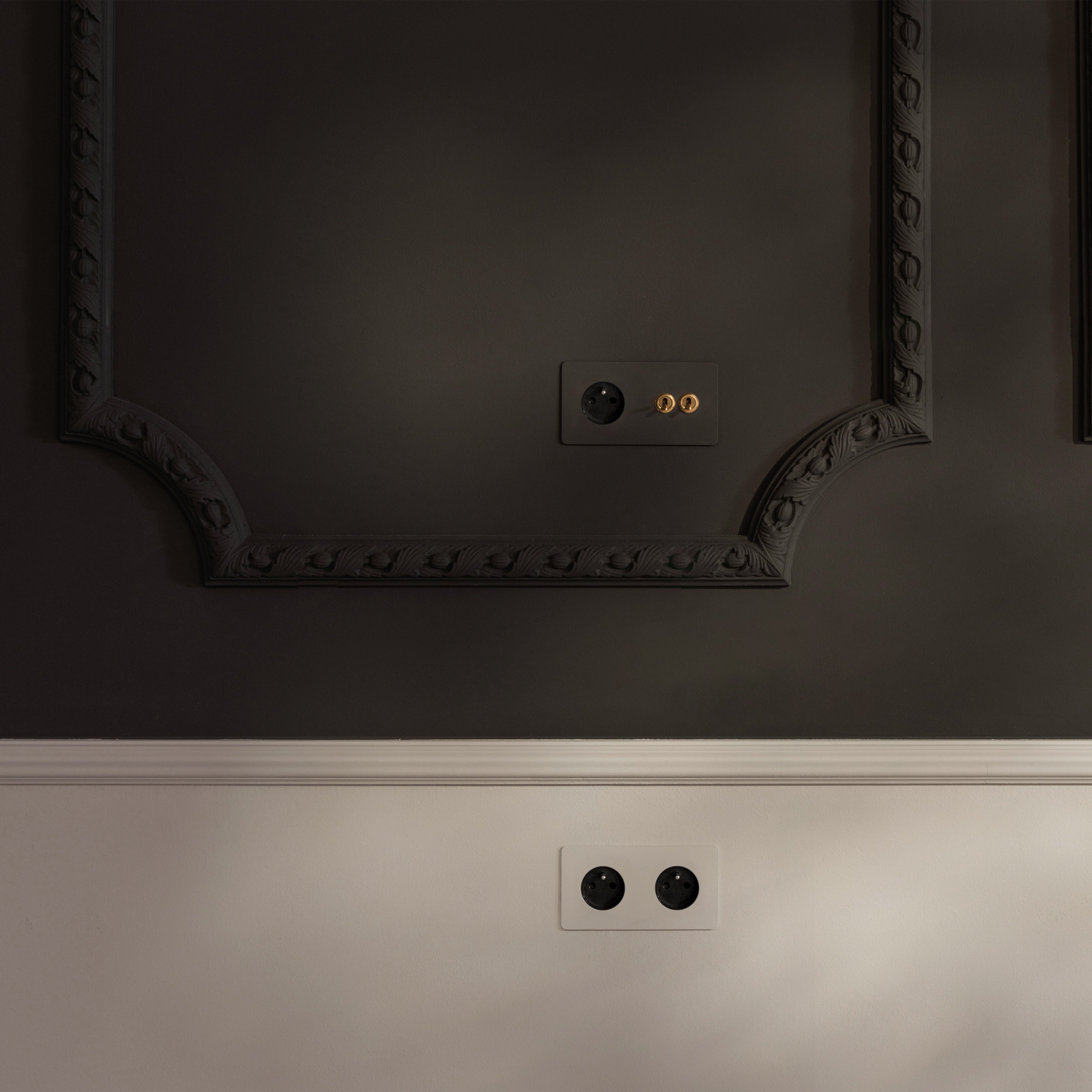 Wij bereiden onze beschilderbare afdekplaten voor met onze eigen etsende primer, zodat je ze eenvoudig in dezelfde kleur als je muren kunt verven. De tuimelschakelaars zijn afgewerkt in Antiek Messing.
