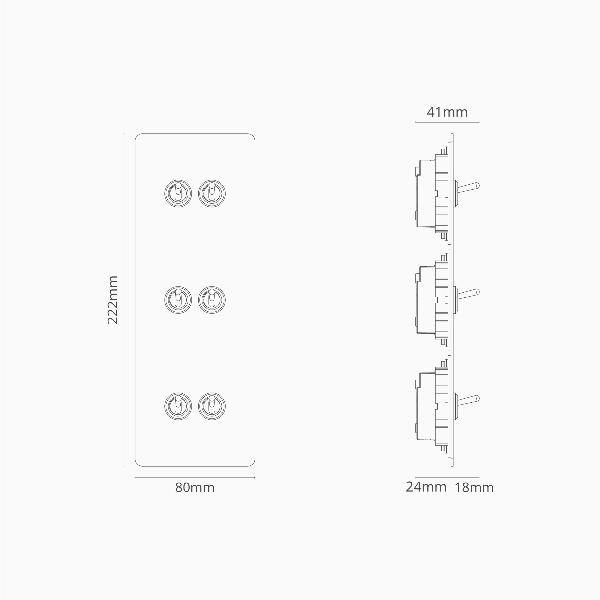Onze drievoudige 6x verticale tweewegschakelaar is een moderne variant op het klassieke dolly-ontwerp. We hebben hem zo strak en tijdloos mogelijk ontworpen, zodat hij in elk interieur past.
