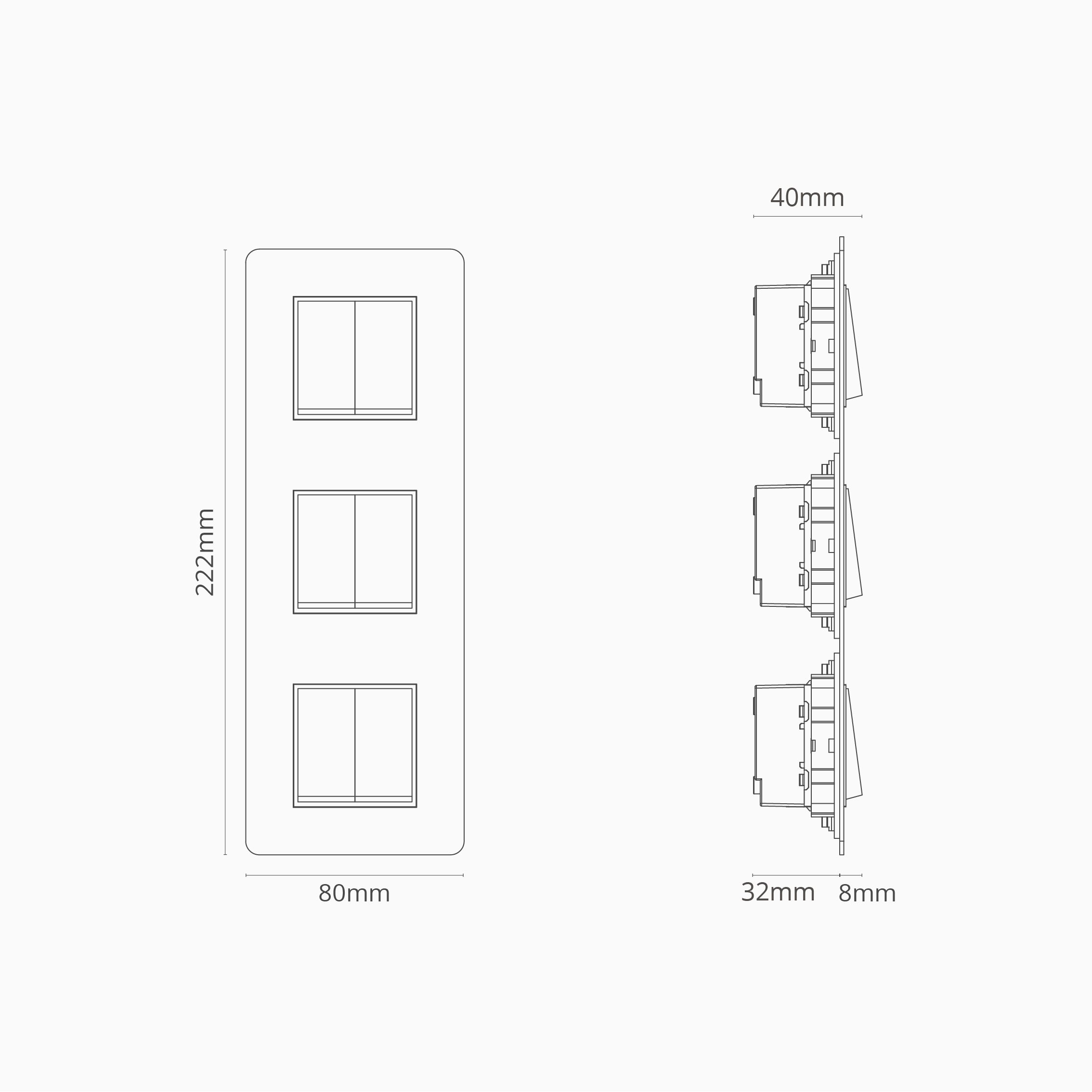 Onze drievoudige 6x verticale wissel-wipschakelaar is zo strak en tijdloos mogelijk ontworpen, zodat hij in elk interieur past.