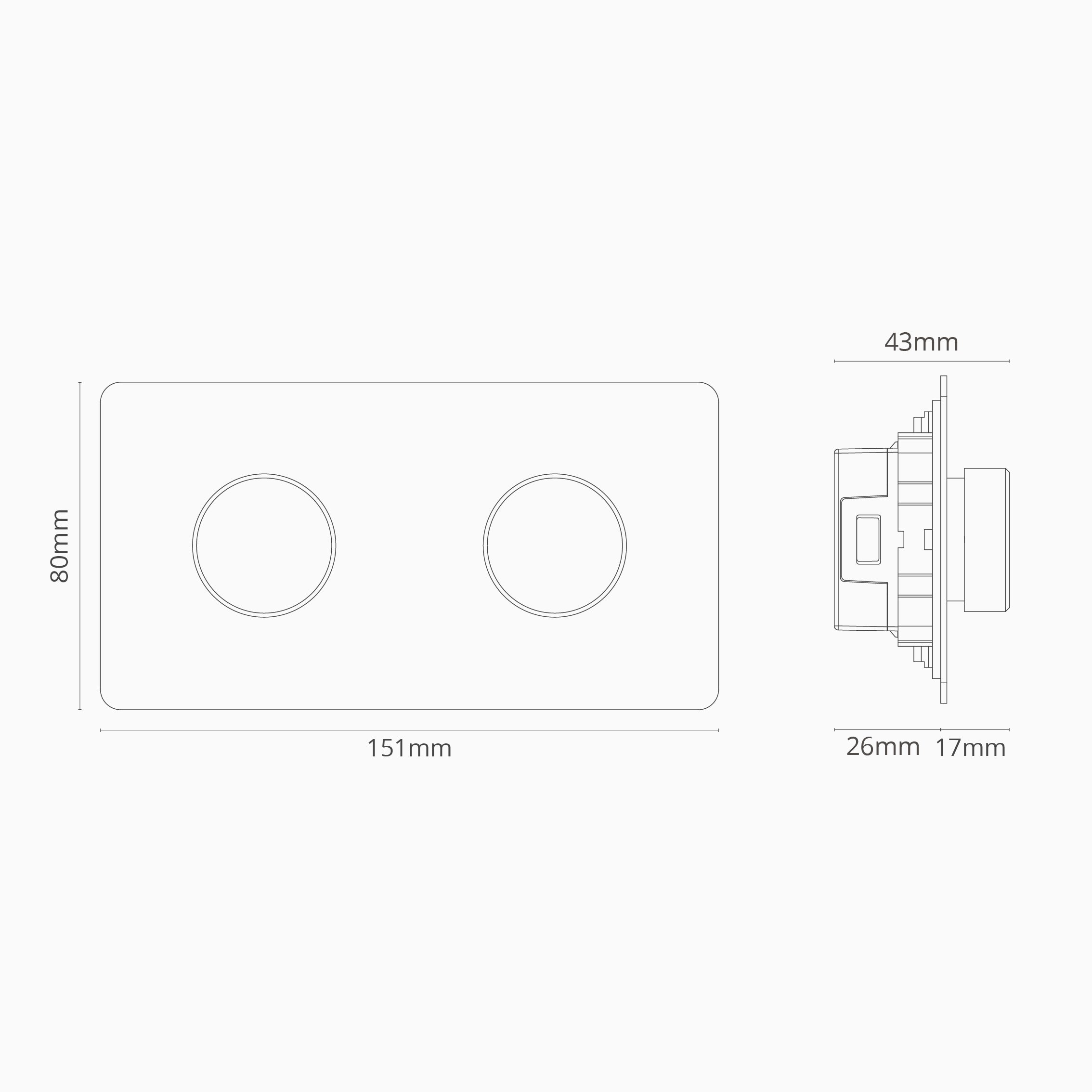 Onze dubbele 2x wissel-draaidimmer is zo strak en tijdloos mogelijk ontworpen, zodat hij in elk interieur past.