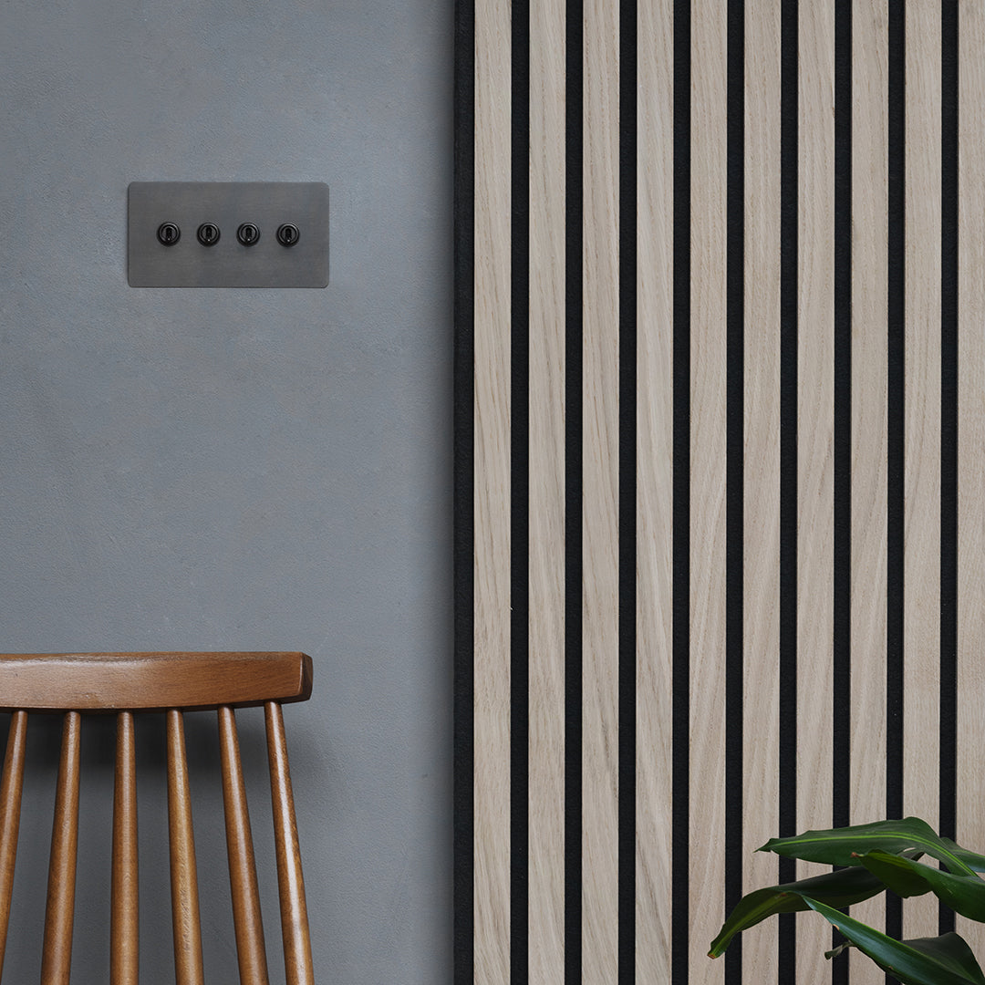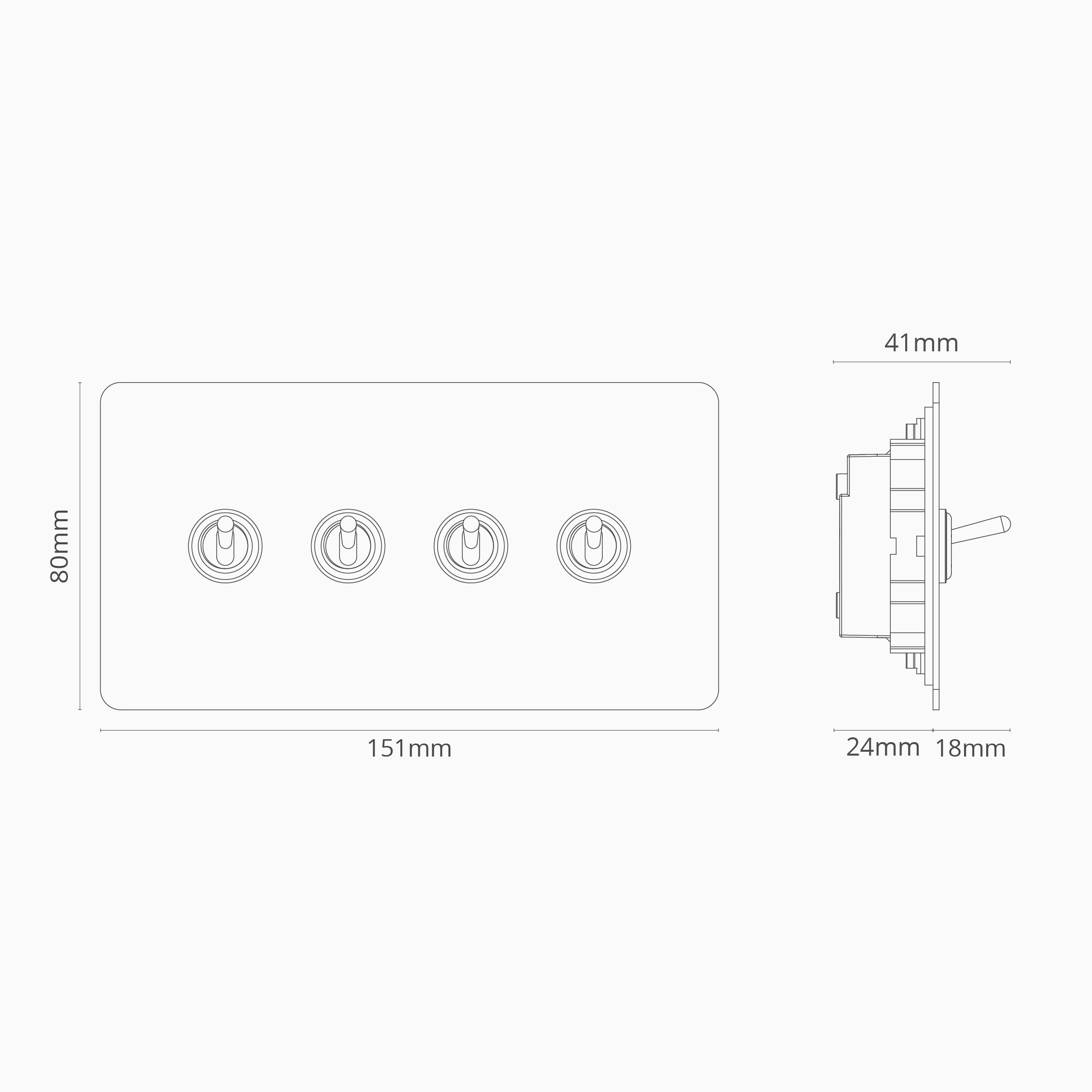 Onze dubbele 4x wissel-tuimelschakelaar is een moderne variant op het klassieke dolly-ontwerp. We hebben hem zo strak en tijdloos mogelijk ontworpen, zodat hij in elk interieur past.