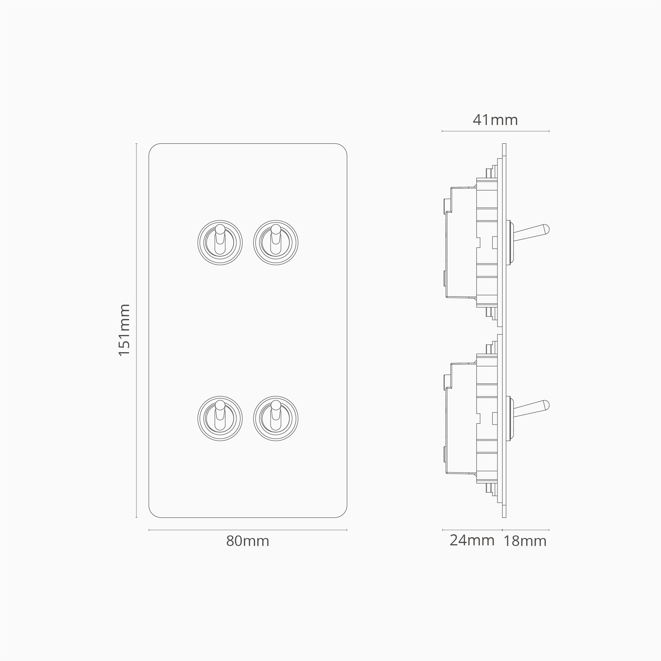 Onze dubbele 4x verticale tuimelchakelaar is een moderne variant op het klassieke dolly-ontwerp. We hebben hem zo strak en tijdloos mogelijk ontworpen, zodat hij in elk interieur past.