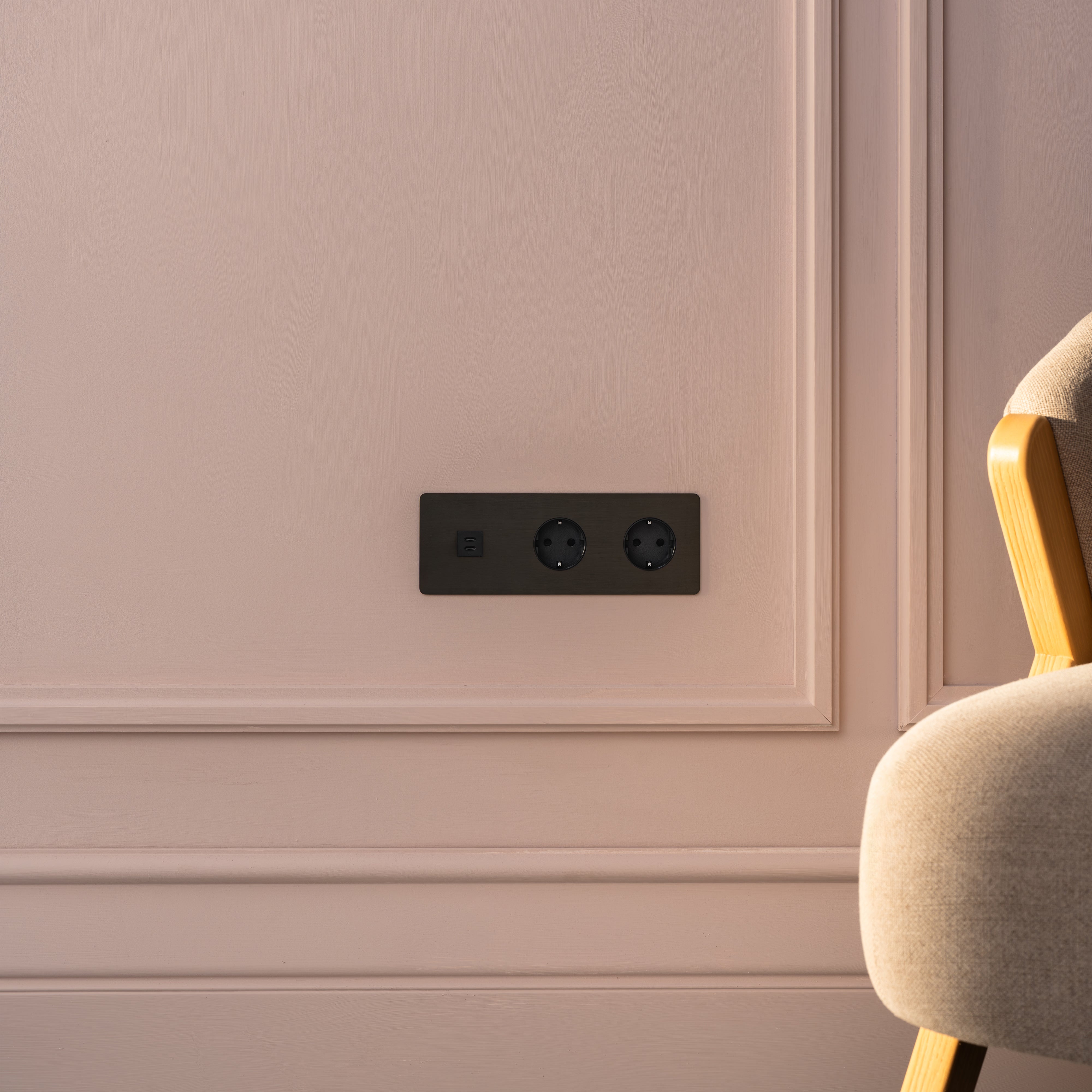 De matte, licht gestructureerde kunststof inzetstukken rond de voedingsmodules zijn verkrijgbaar in zwart.