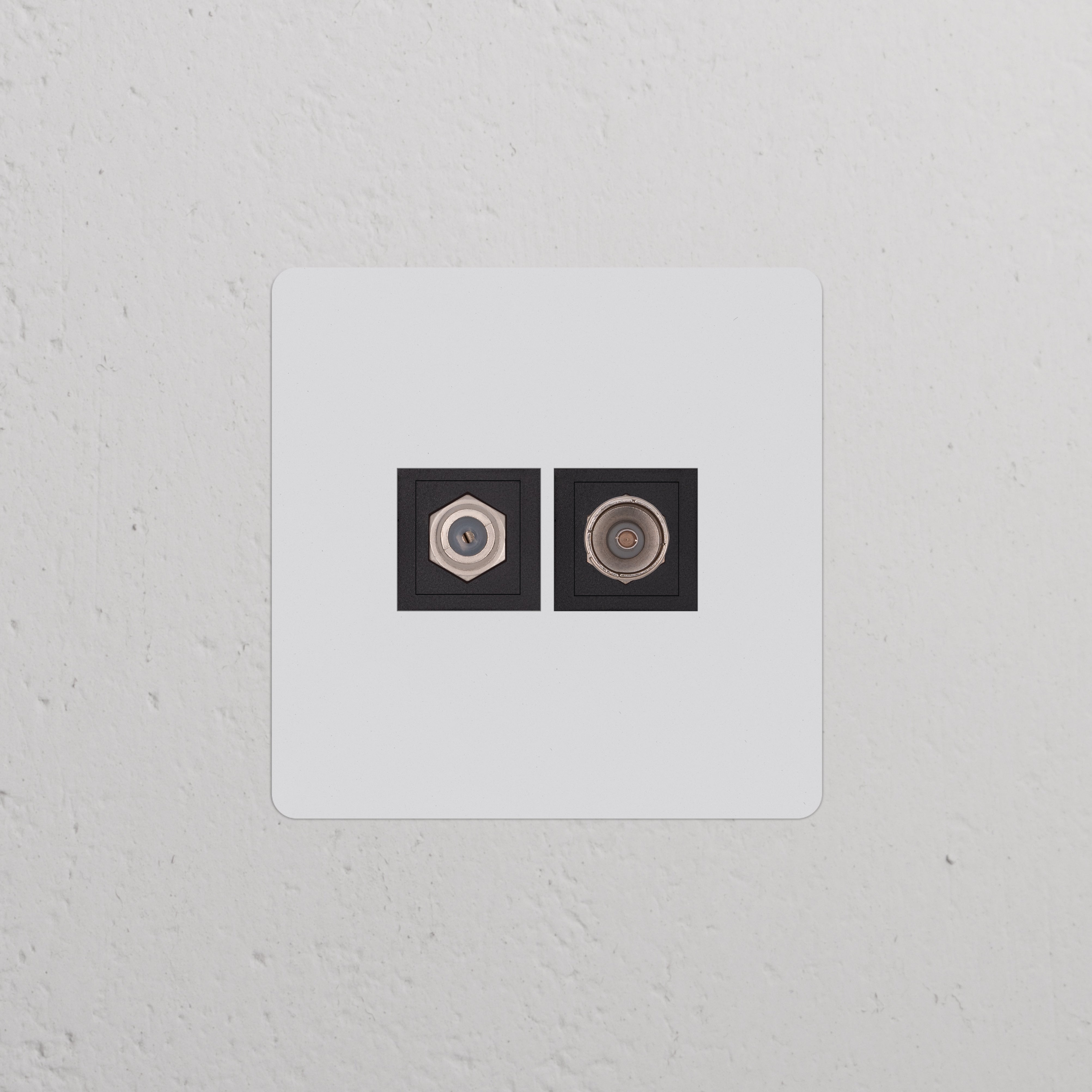 Deze enkele multi-aansluiting combineert een satelliet- en tv-aansluiting op één afdekplaat.