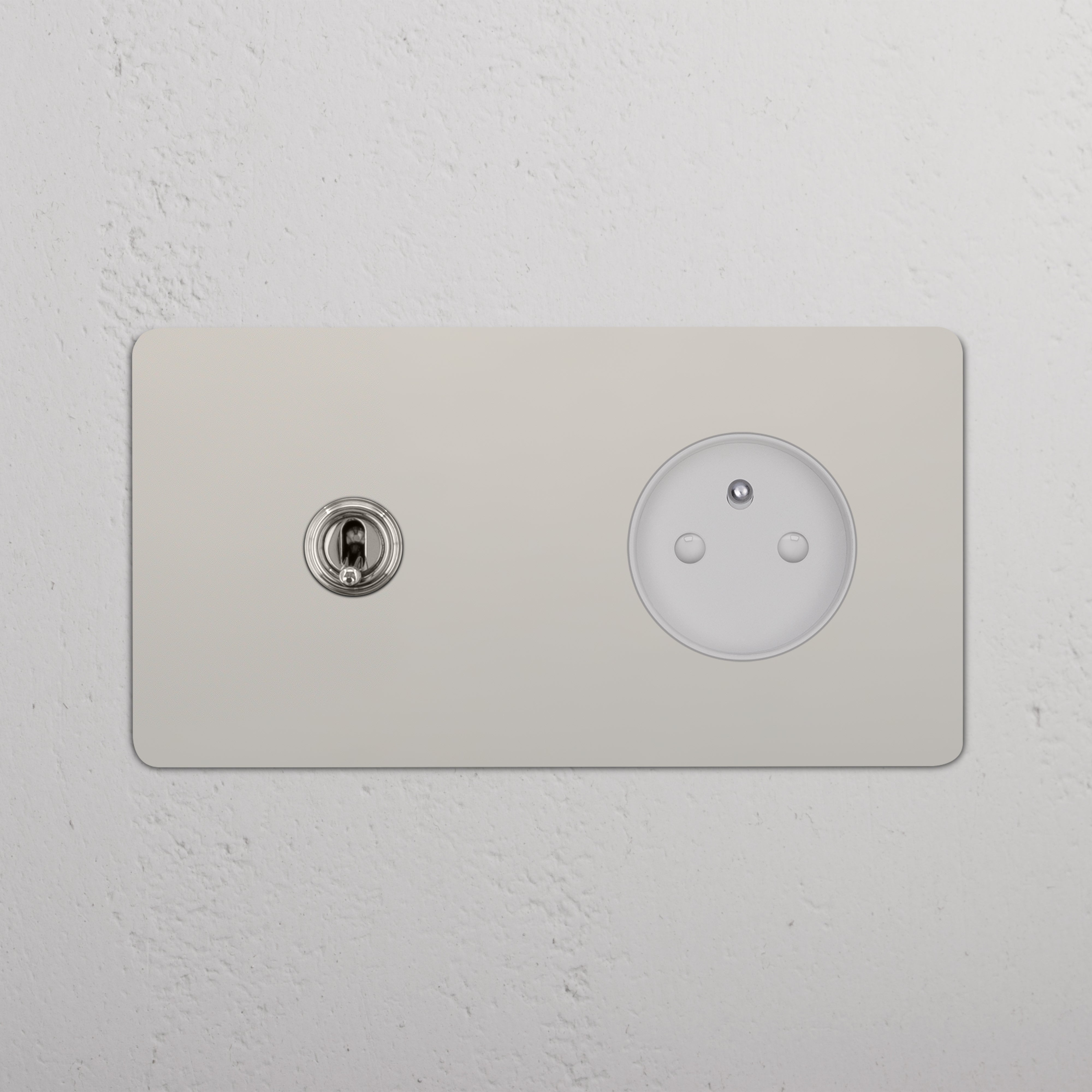 Dit product combineert een wissel-tuimelschakelaar met een Frans/Belgische stopcontact op één dubbele afdekplaat.