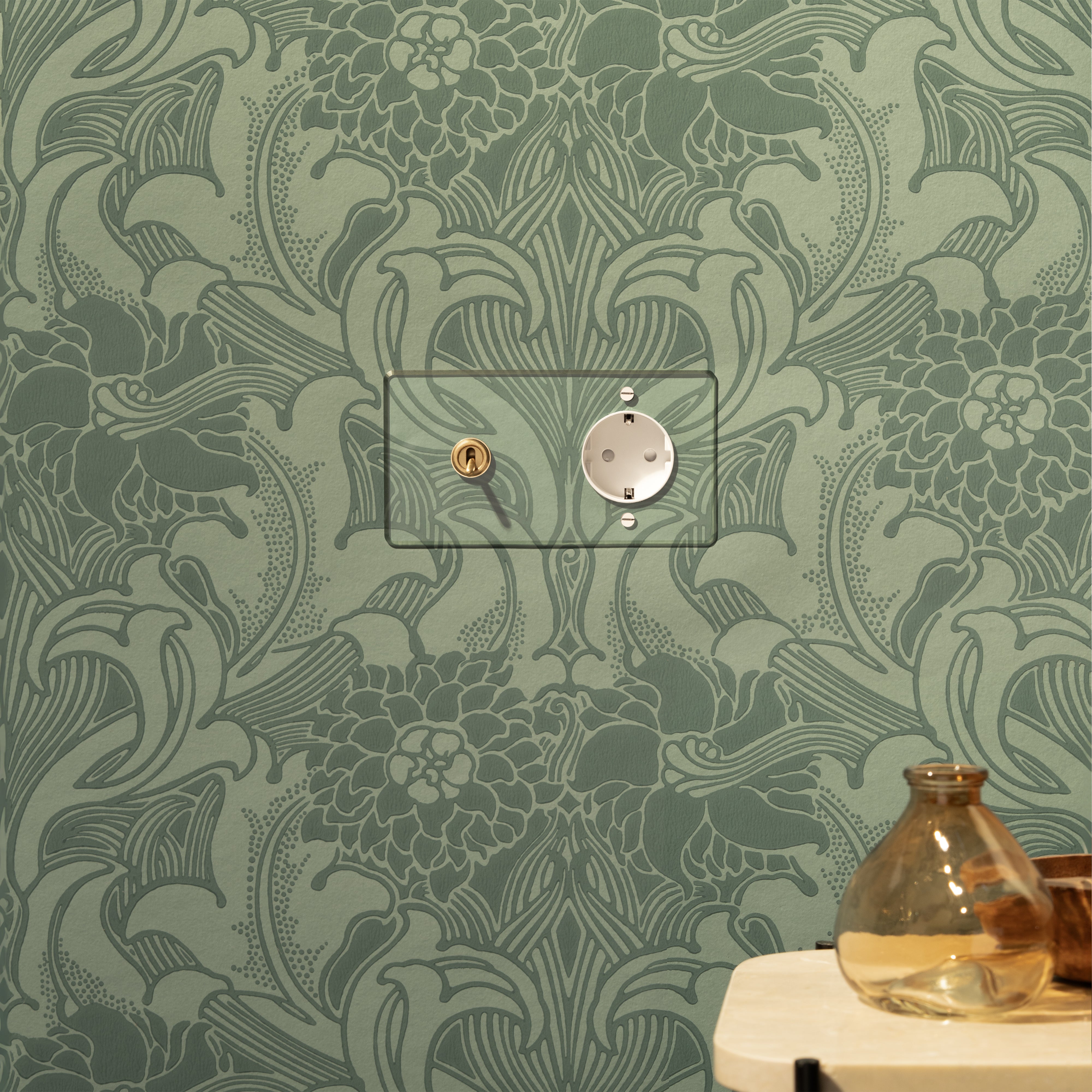 We hebben onze doorzichtige collectie gemaakt van polycarbonaat, dit is flexibeler en duurzamer dan gebruikelijk acryl. De tuimelschakelaar is gemaakt van massief messing in onze antiek messing afwerking.