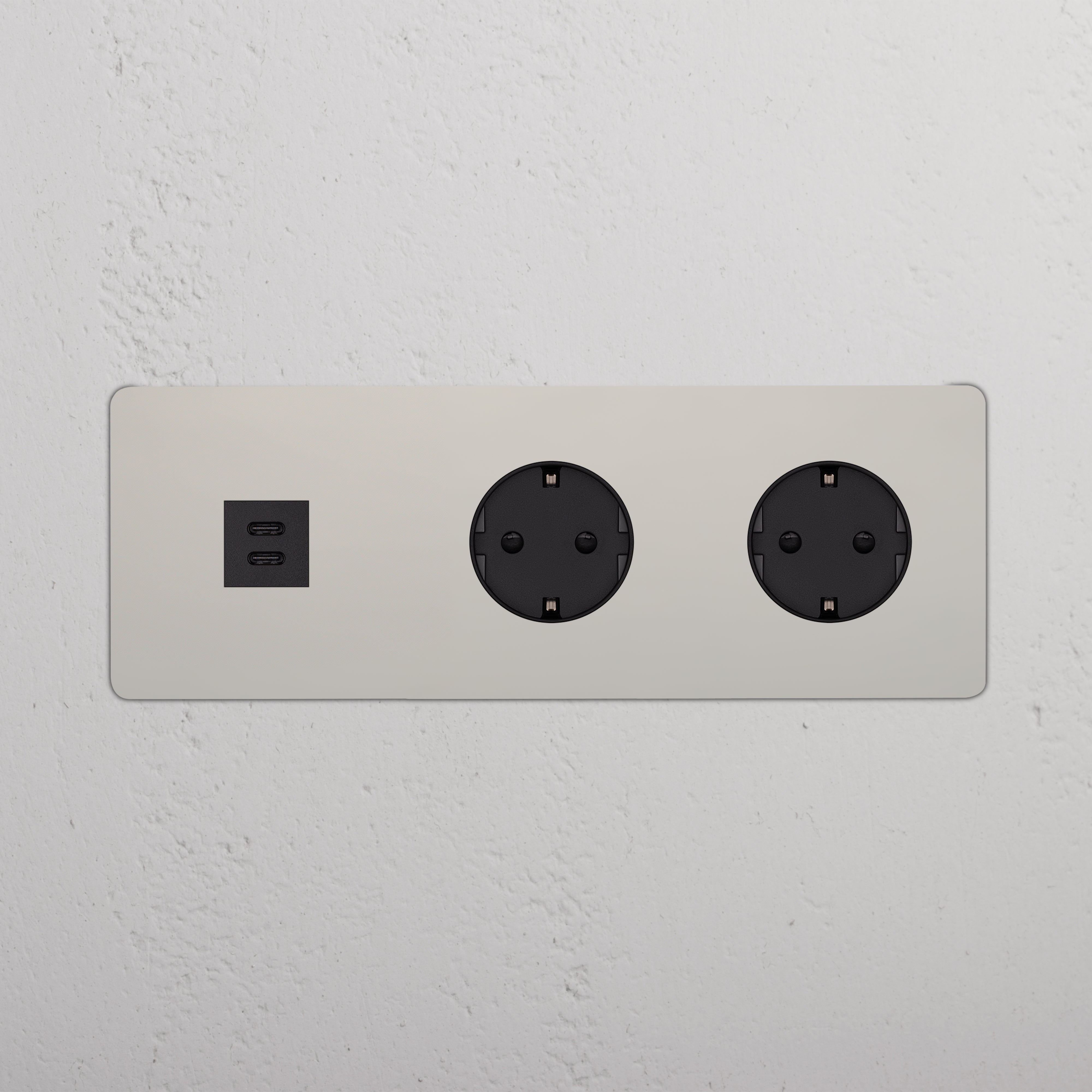 Dit product combineert een USB-C-voedingsmodule en twee Schuko-stopcontacten op één drievoudige afdekplaat.