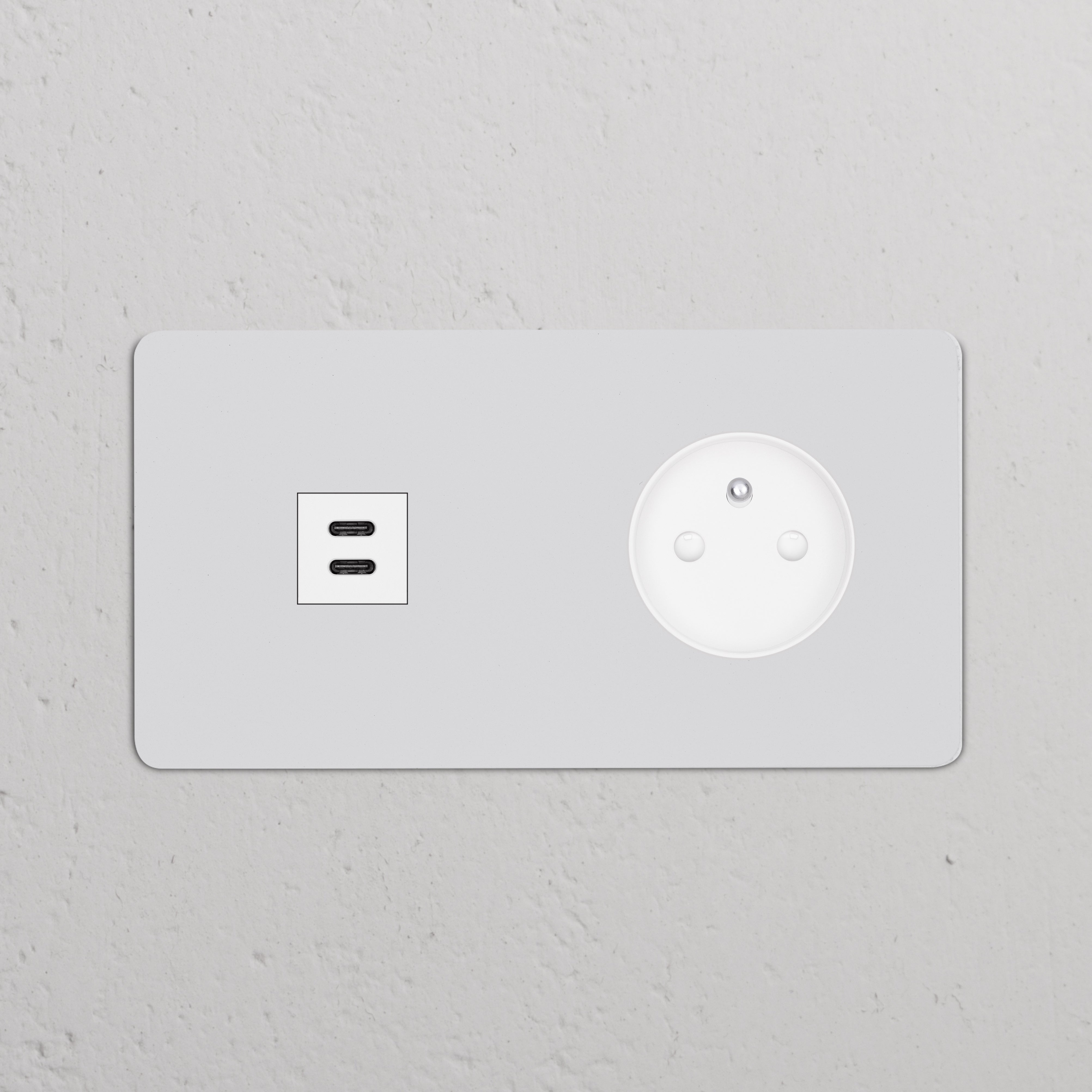 Dit product combineert een USB-C-voedingsmodule en een Frans/Belgisch stopcontact op één dubbele afdekplaat.